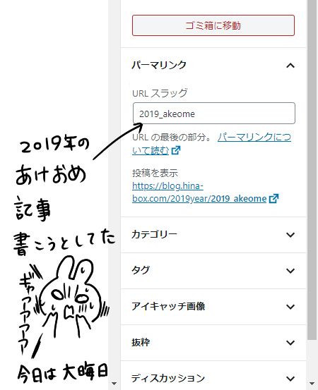 と、とりあえず、2019年の年賀状…ここにおいておきますね…